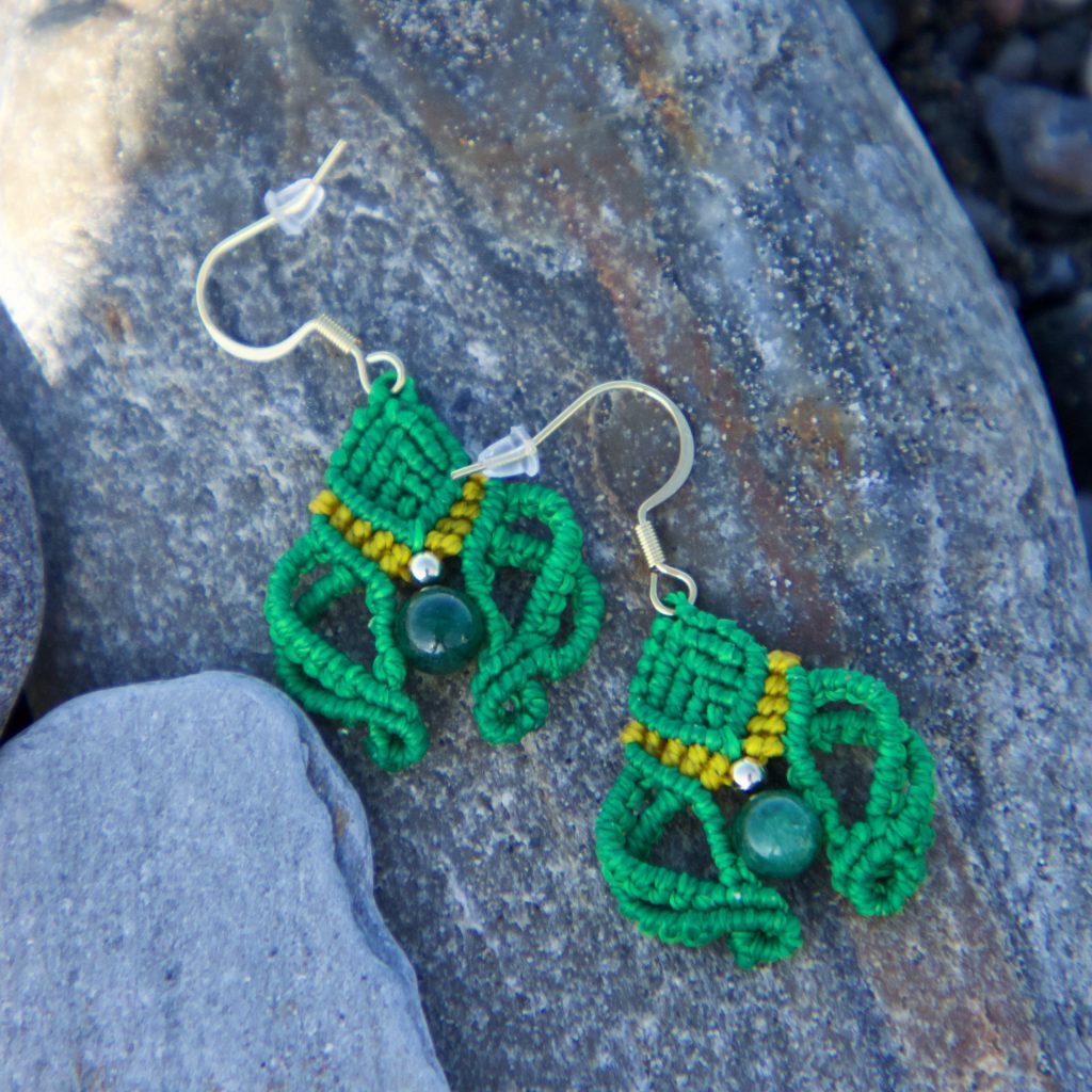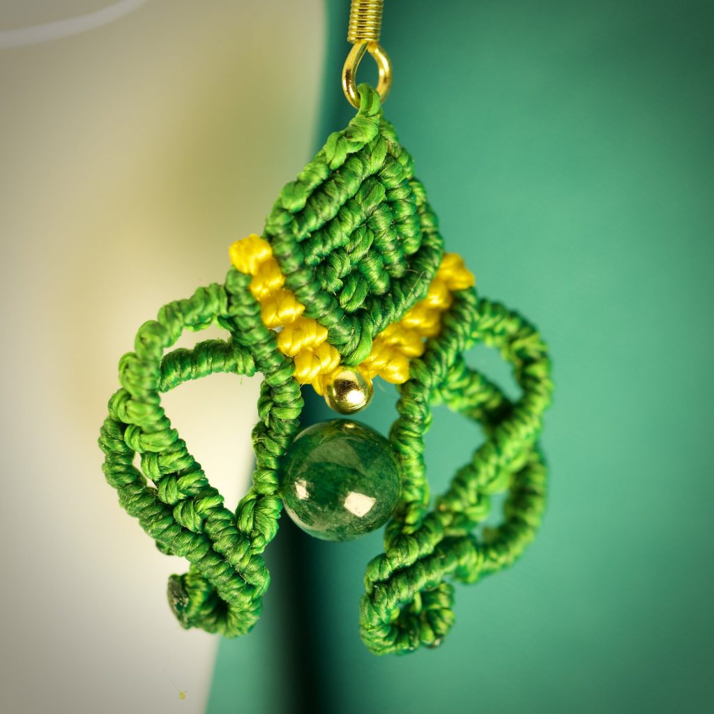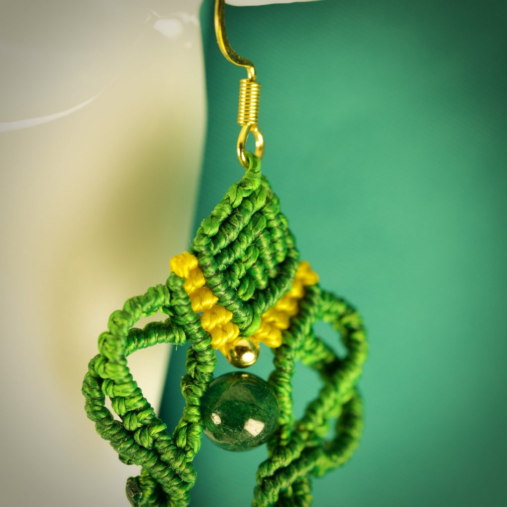 Élégance naturelle : L’alliance du macramé vert, du jaune lumineux et de l’émeraude te rapproche de la nature tout en sublimant ton style.
