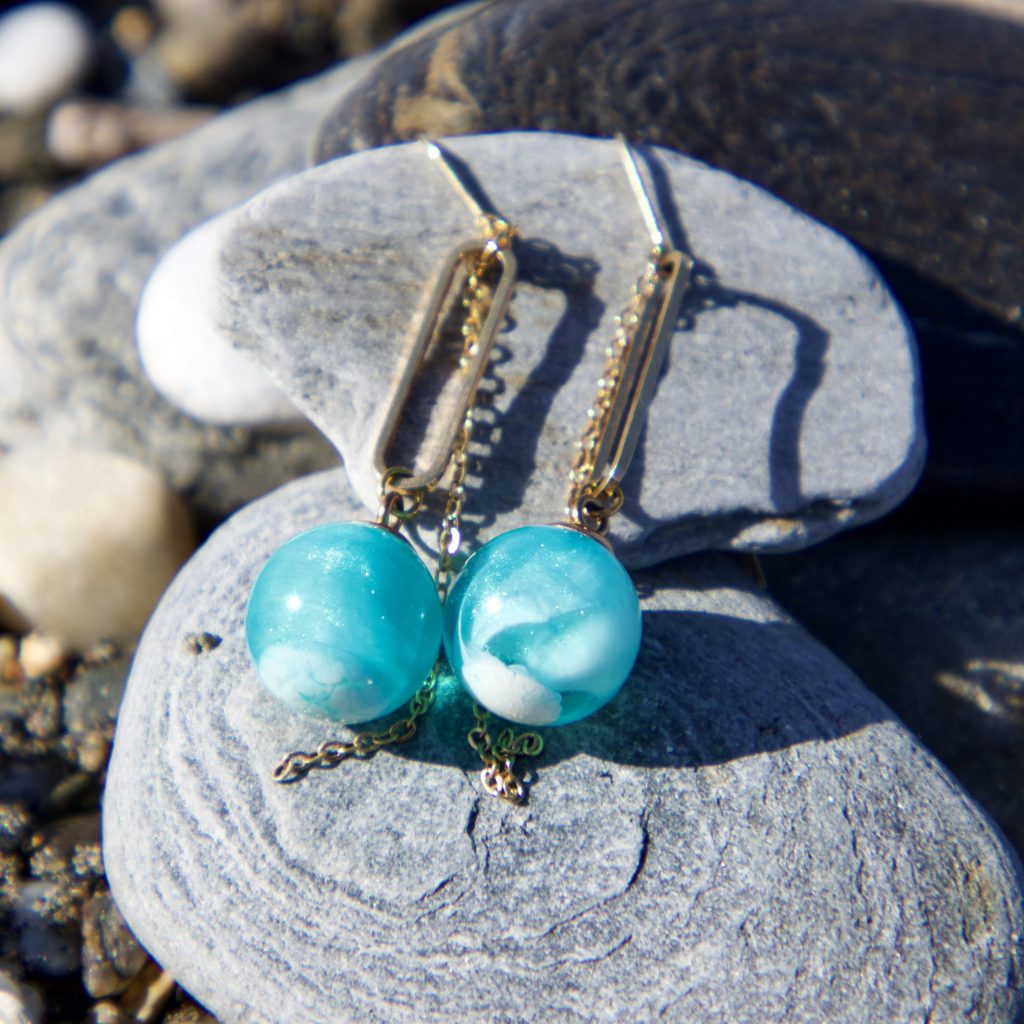 Chaque paire est une véritable œuvre d’art : la résine ne forme jamais deux fois le même motif, ce qui fait de chaque boucle une pièce absolument unique. Que tu optes pour un bleu ciel délicat ou pour l’une des autres variantes de couleurs disponibles, chaque modèle est conçu pour capturer l’essence de ton style. Légères, modernes et totalement dans l’air du temps, ces boucles d’oreilles apportent une touche de fraîcheur et de lumière à toutes tes tenues, qu’il s’agisse d’une journée décontractée ou d’une soirée élégante.