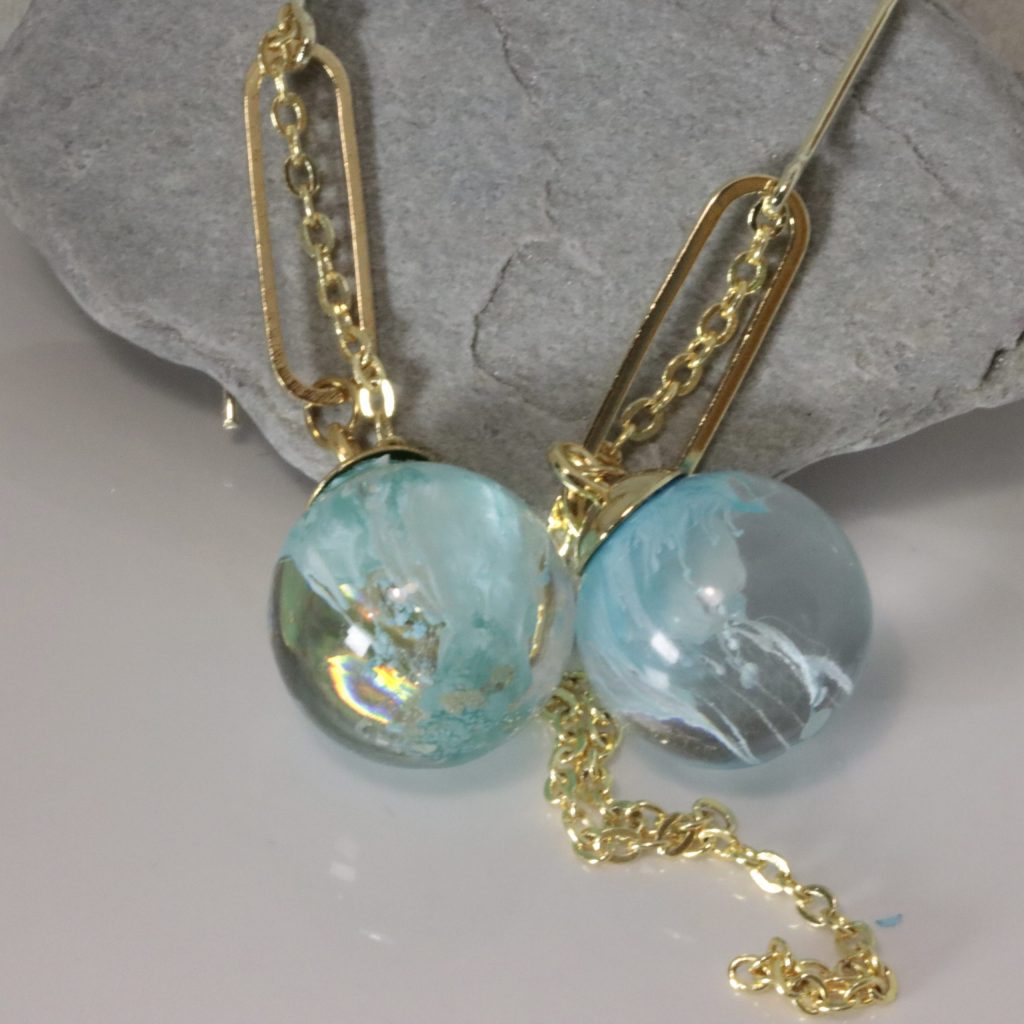 – Des pièces uniques : Chaque sphère en résine est unique grâce aux motifs aléatoires formés par les filaments, pour un bijou aussi singulier que toi.