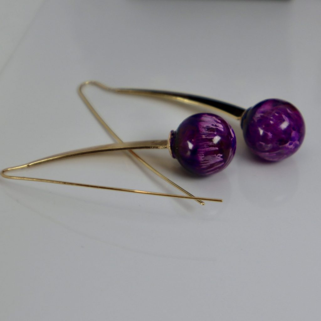 Boucles d’oreilles pendantes en résine violette et plaqué or 18k – Élégance aérienne et moderne