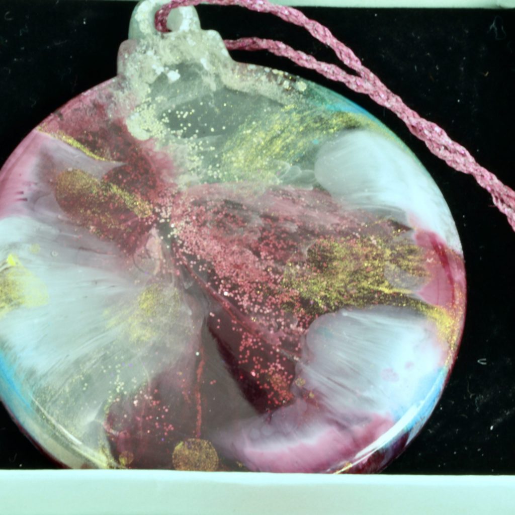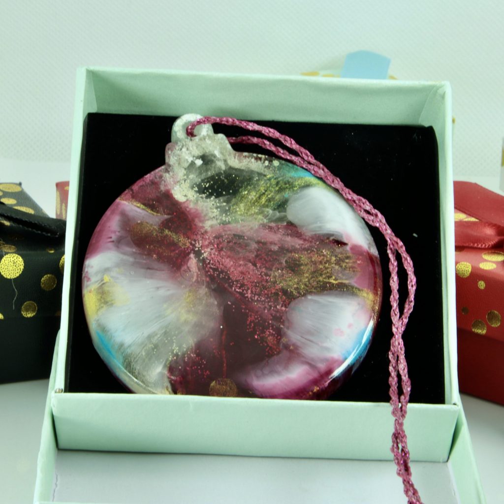 Laisse-toi séduire par la magie des fêtes avec cette boule de Noël plate en résine, une création artisanale conçue pour captiver l’attention et réchauffer le cœur. Sa palette de couleurs féériques – un bordeaux profond et pailleté, un doré scintillant, et des touches subtiles de blanc et de reflets bleutés – évoque l’élégance des soirées d’hiver.