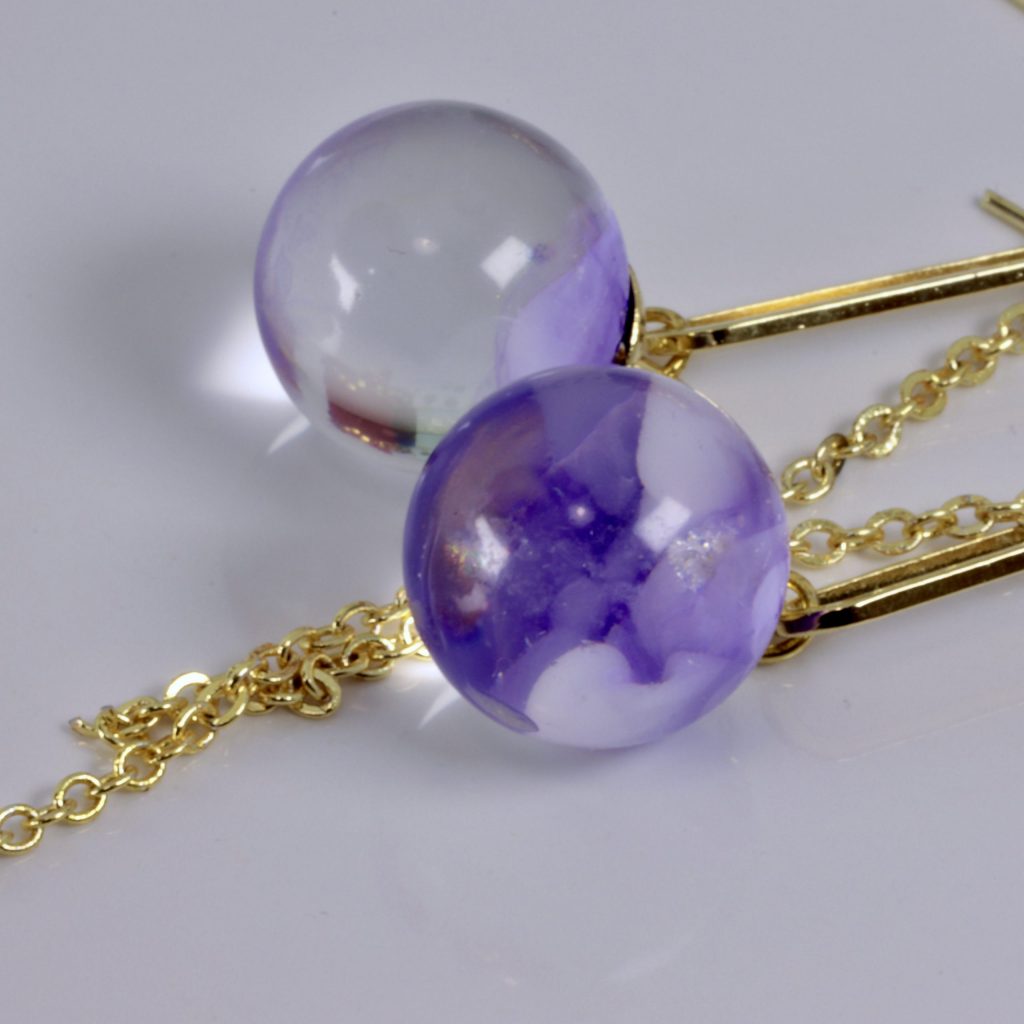 – Un nuage de douceur à tes oreilles : Le délicat effet nuage dans la résine lavande t’offre un bijou aussi apaisant qu’élégant.