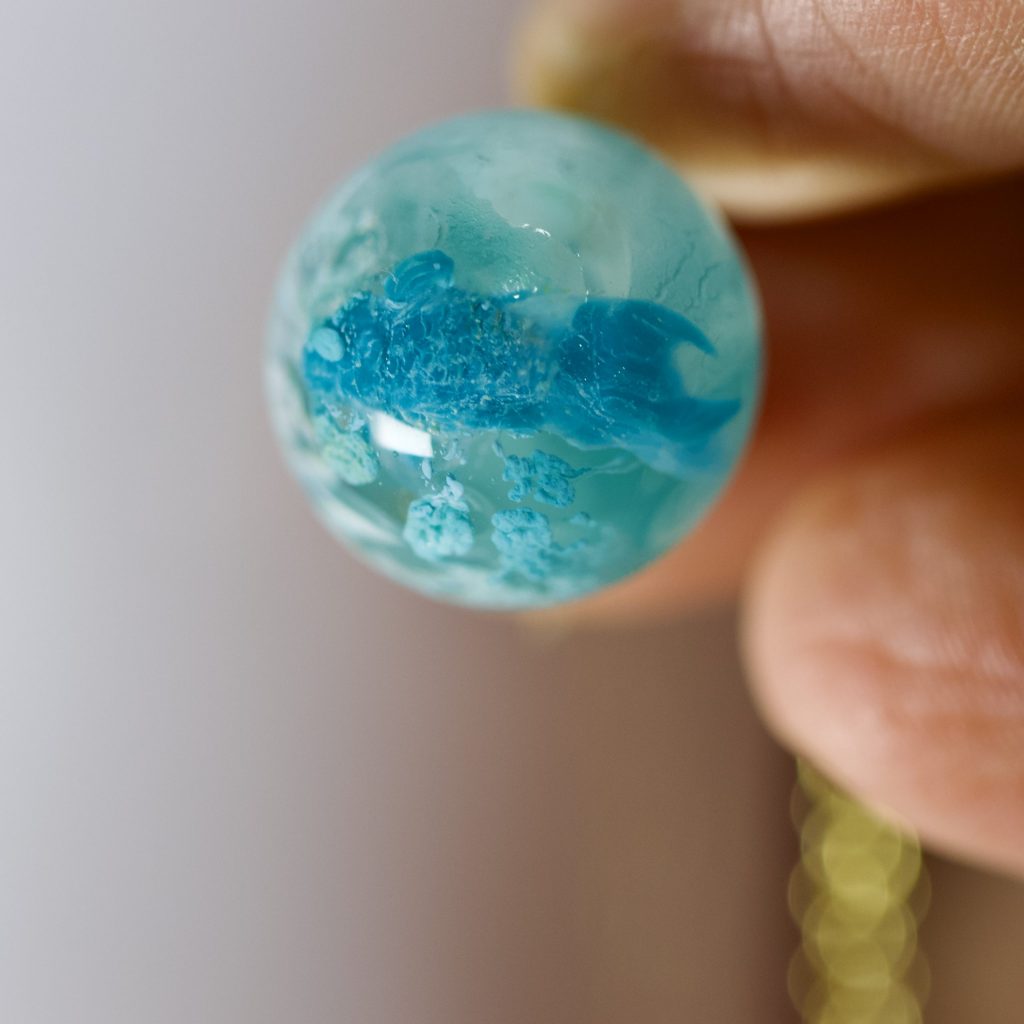 3️⃣ Un savoir-faire artisanal unique : Chaque poisson, chaque filament, chaque inclusion est réalisée à la main, rendant chaque paire absolument singulière. Un petit monde miniature dans une perle.