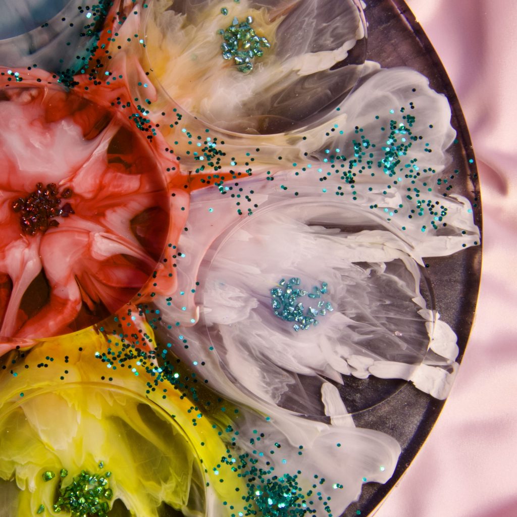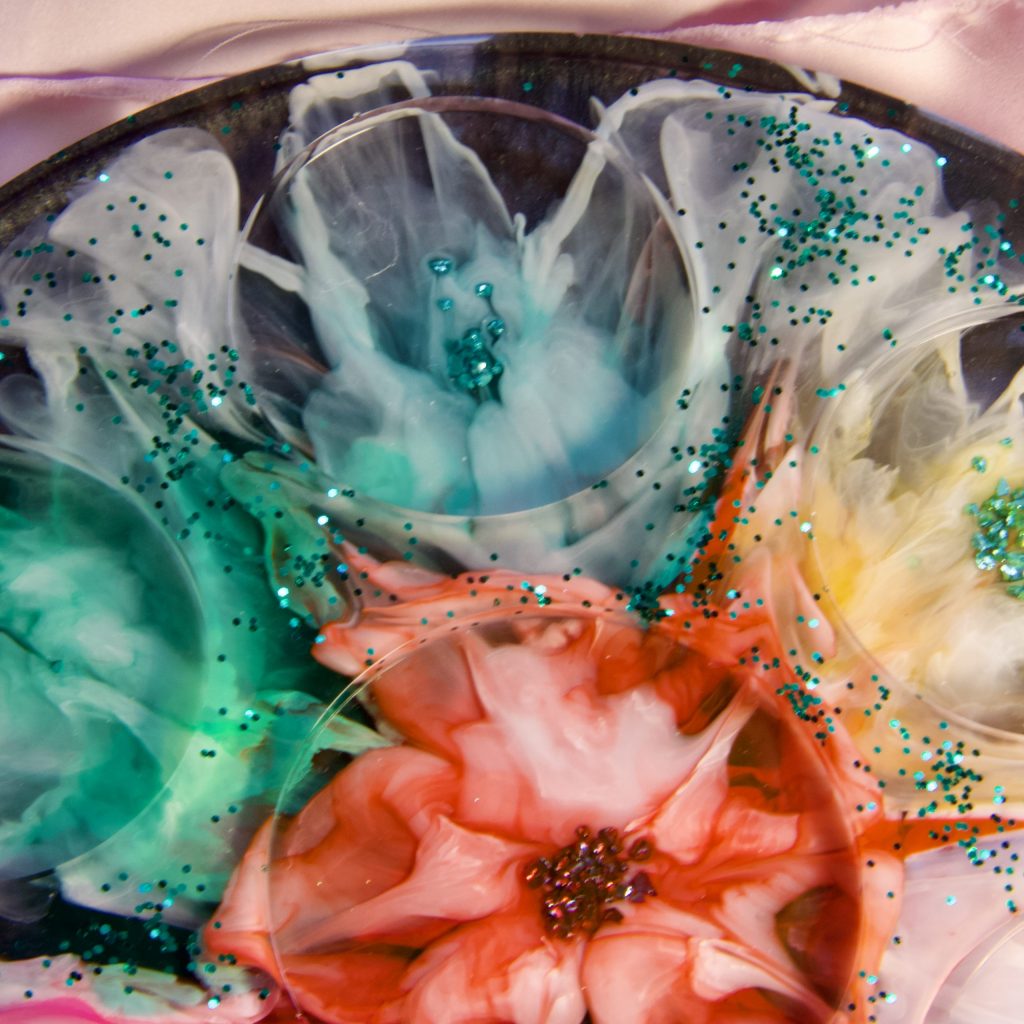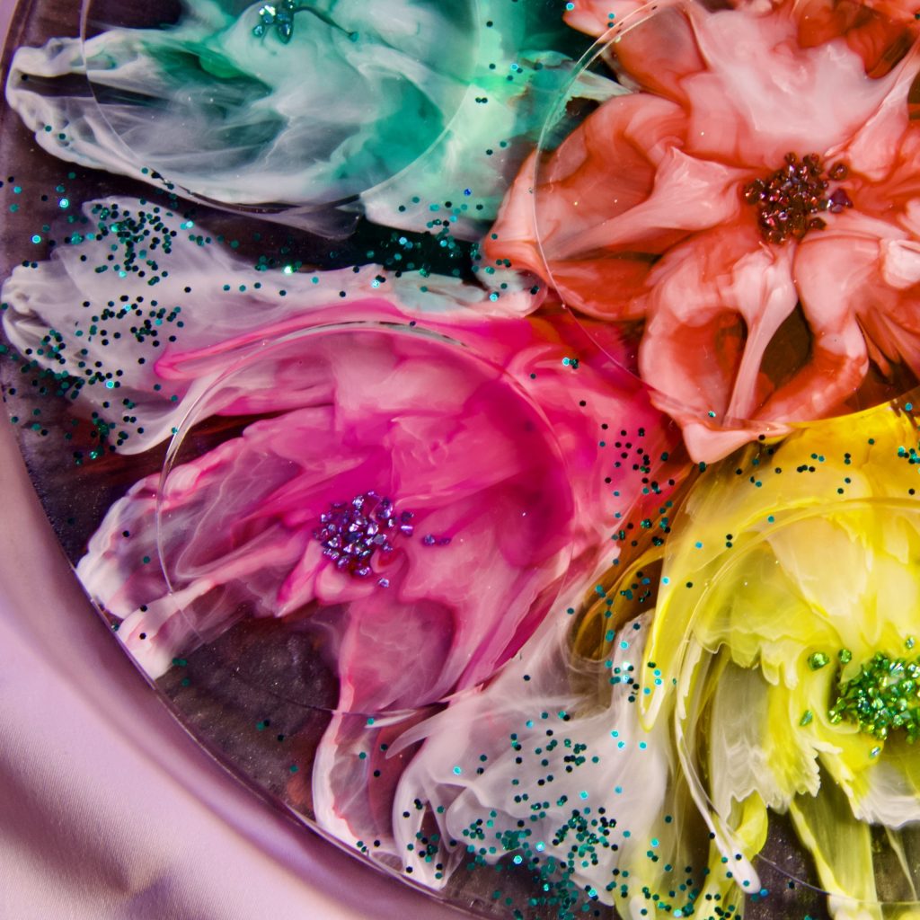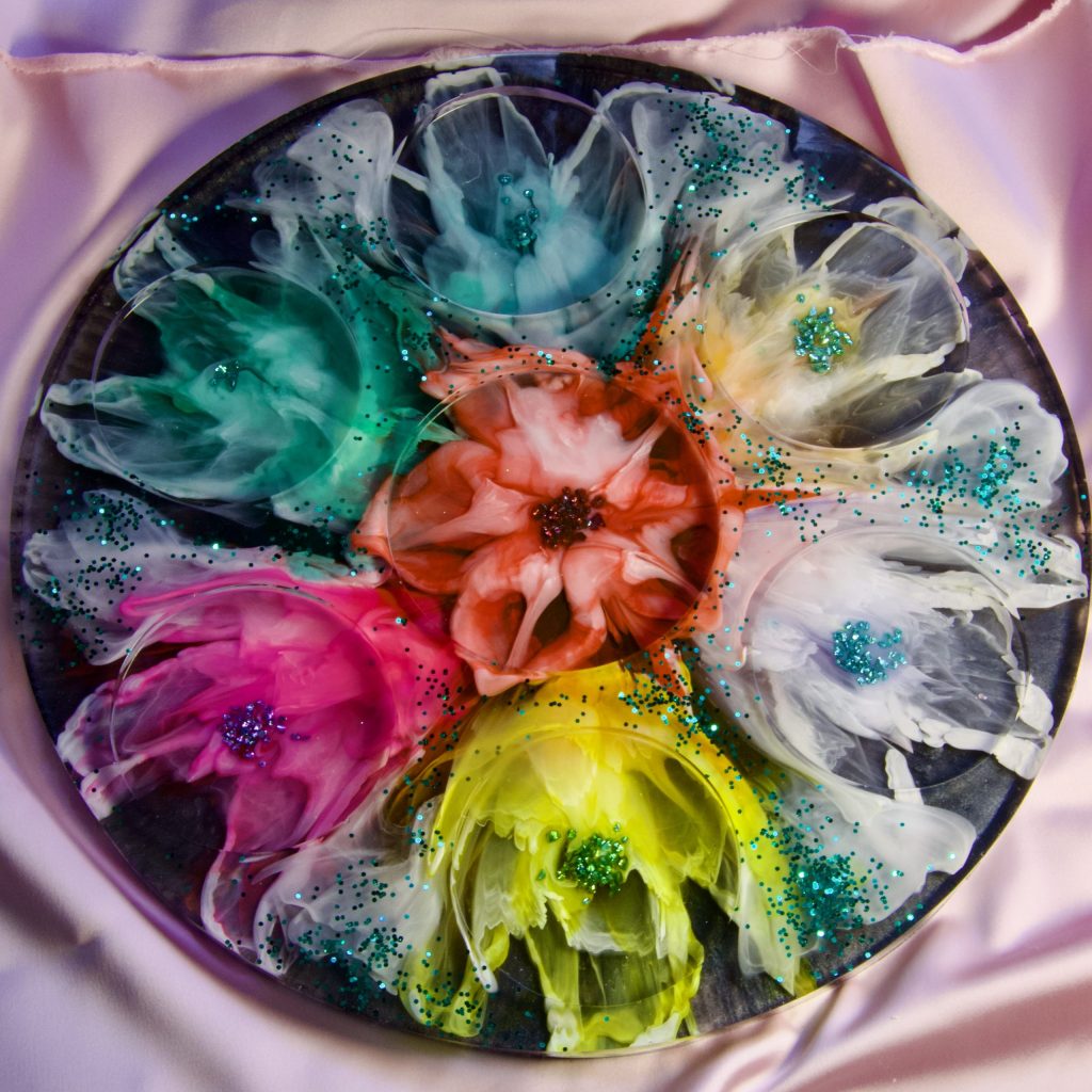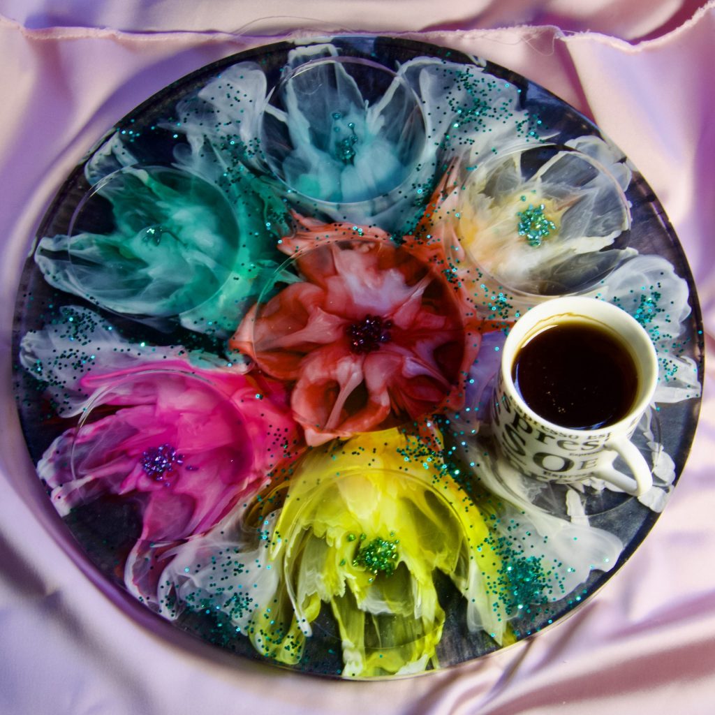 Plateau à verres multicolore en résine – L’harmonie des couleurs florales