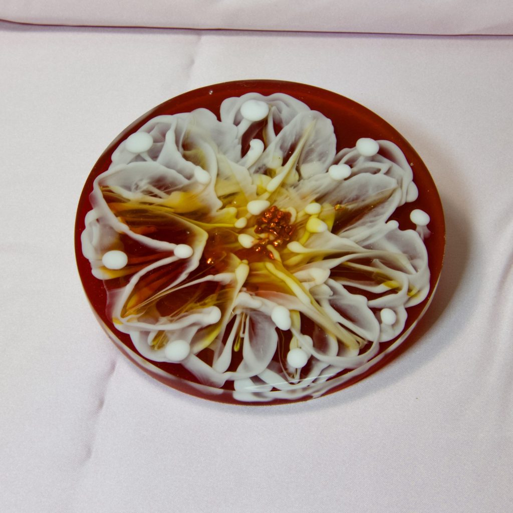 Imagine-toi dans un champ de fleurs baignées par les premiers rayons du matin. L’air est doux, le ciel s’embrase de reflets dorés et une brise légère fait danser les pétales d’une fleur sauvage éclatante… C’est cette magie que renferme cette sous-tasse en résine.
